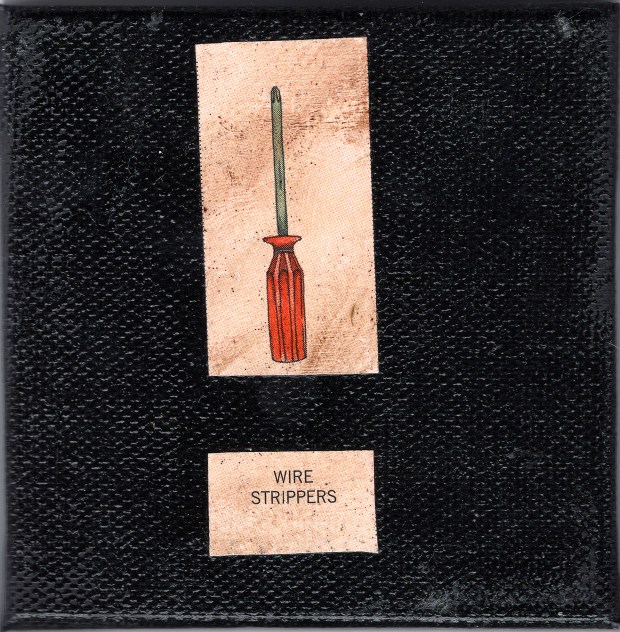 Lazy Dada Tool Swap Electrical TapeFlathead ScrewdriverCordless Electric ScrewdriverVoltage TesterScissorsWire StrippersFlashlightTravel WickLazy Dada Tool Swap, Mixed Media on Canvas, 2016 Share this: Click to share on X (Opens in new window) X Click to share on Facebook (Opens in new window) Facebook Click to share on Tumblr (Opens in new window) Tumblr Like Loading...